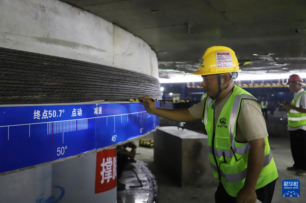10月16日凌晨,工人在检查转盘和牵引钢绞线状况。