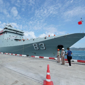 当日上午,中国海军83舰编队抵达泰国梭桃邑港,开始对泰国进行为期4天的友好访问。