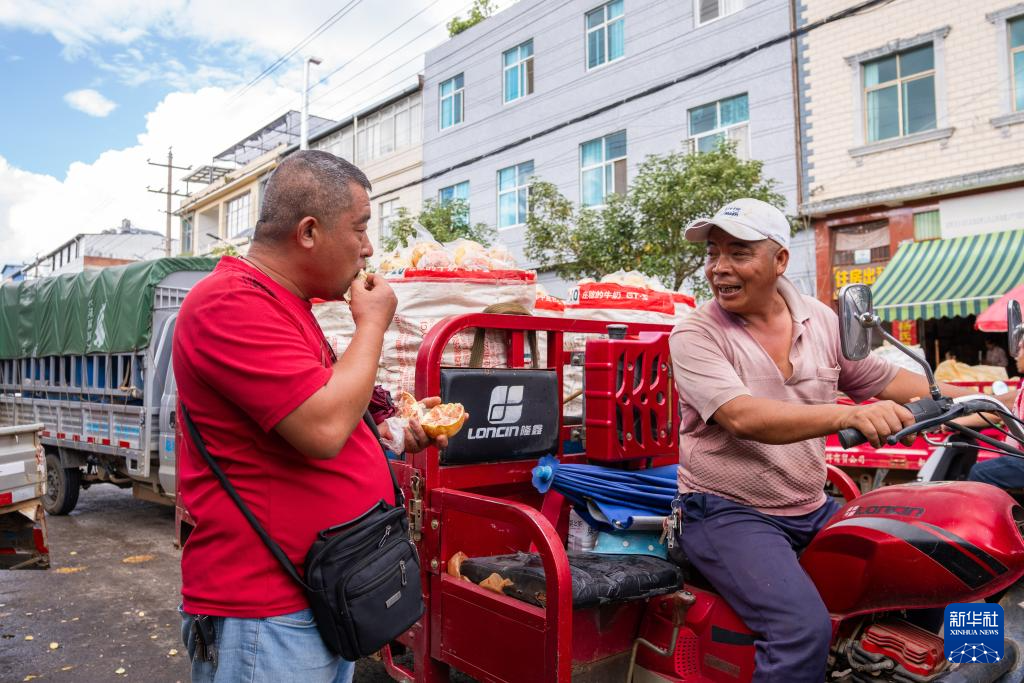 10月15日,人们在蒙自市新安所街道交易石榴。