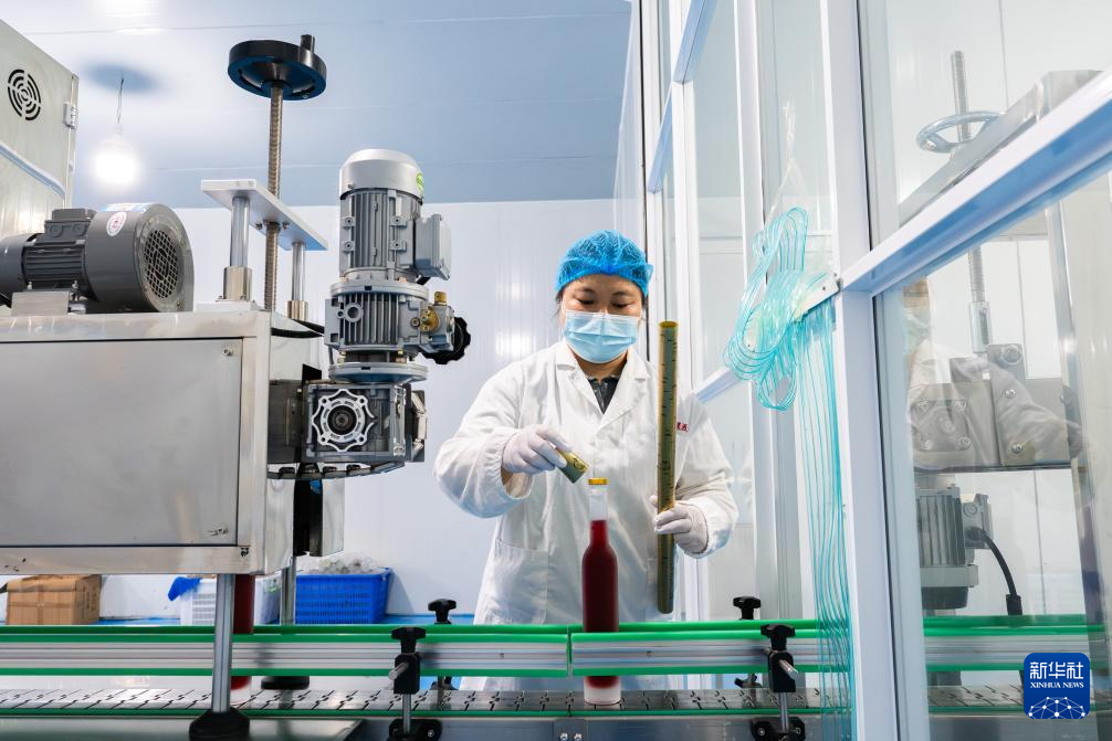 10月15日,蒙自飞花酿果酒厂工作人员在包装石榴酒。