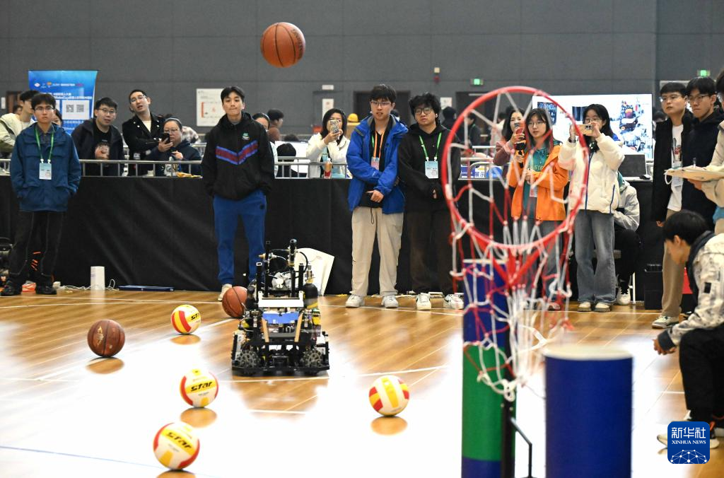 10月17日,篮球机器人在河北省石家庄国际会展中心进行比赛。
