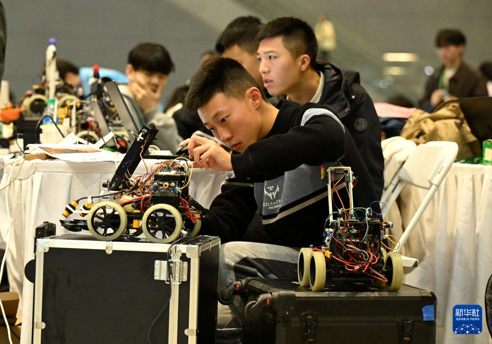 10月17日,参赛选手在河北省石家庄国际会展中心进行赛前调试。