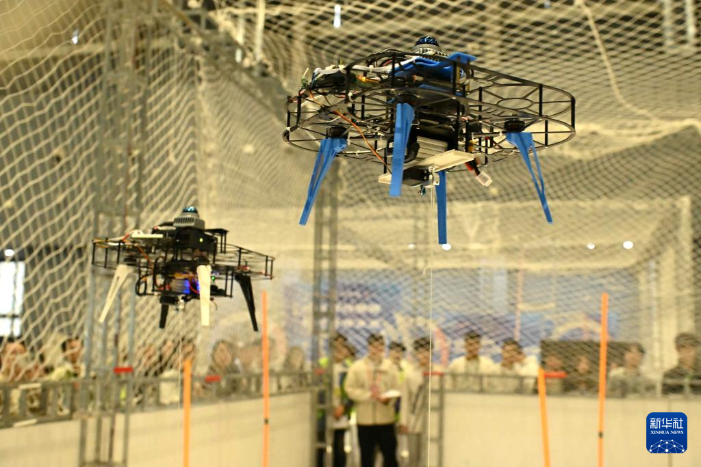 10月17日在河北省石家庄国际会展中心拍摄的无人机挑战比赛。