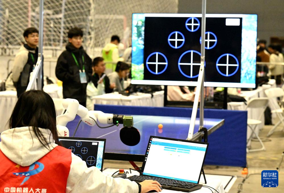 10月17日,乒乓球机器人在河北省石家庄国际会展中心进行比赛。