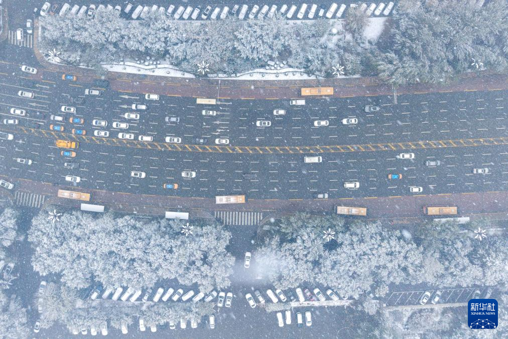 10月17日,车辆行驶在哈尔滨市主干道中山路上(无人机照片)。