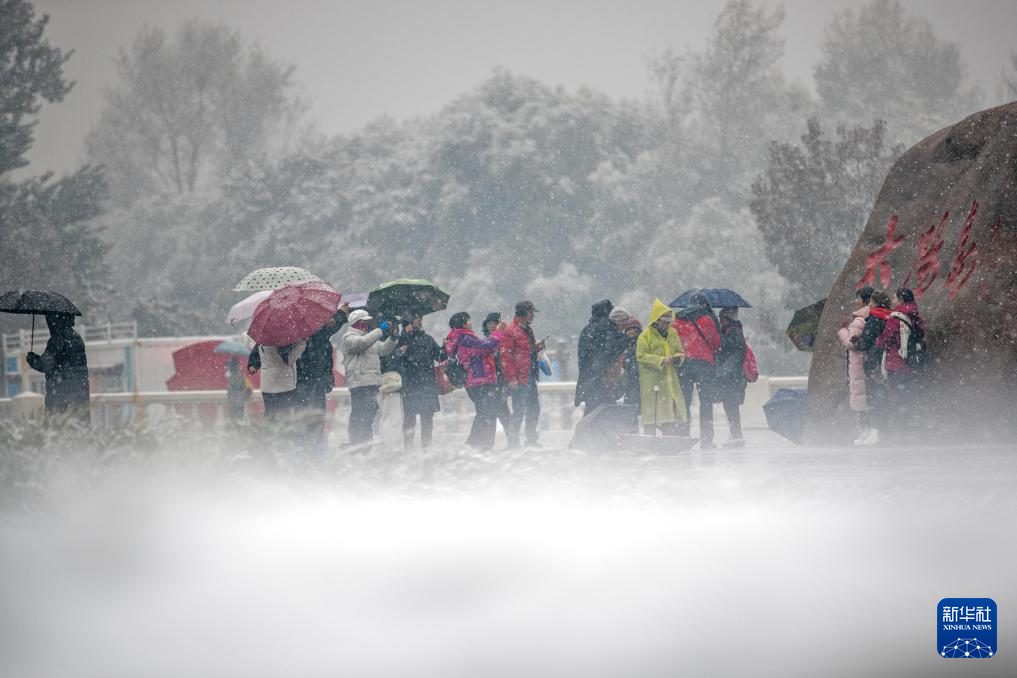 10月17日,游客在哈尔滨市太阳岛风景区冒雪游览。