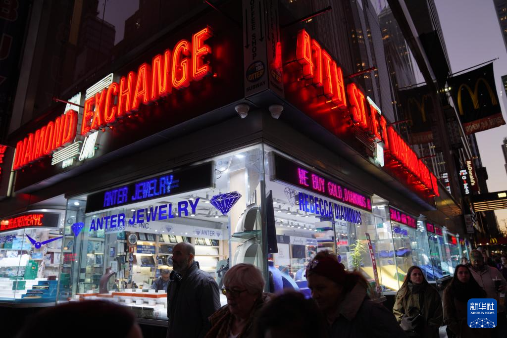 10月16日,在美国纽约,人们从一家珠宝商店门前走过。
