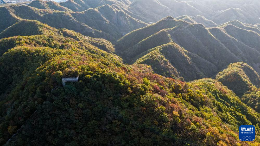 10月18日在河北省唐山市迁西县上营镇拍摄的青山关长城秋景(无人机照片)。
