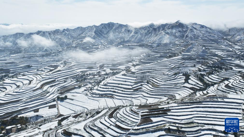 这是10月17日在甘肃永靖县陈井镇拍摄的雪后梯田(无人机照片)。