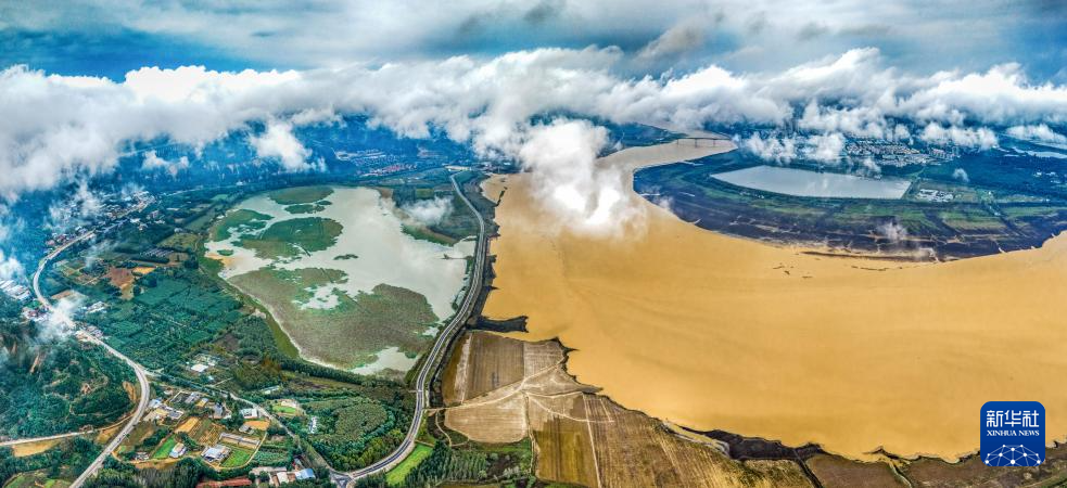 10月17日在山西省运城市平陆县境内拍摄的黄河云海景观。