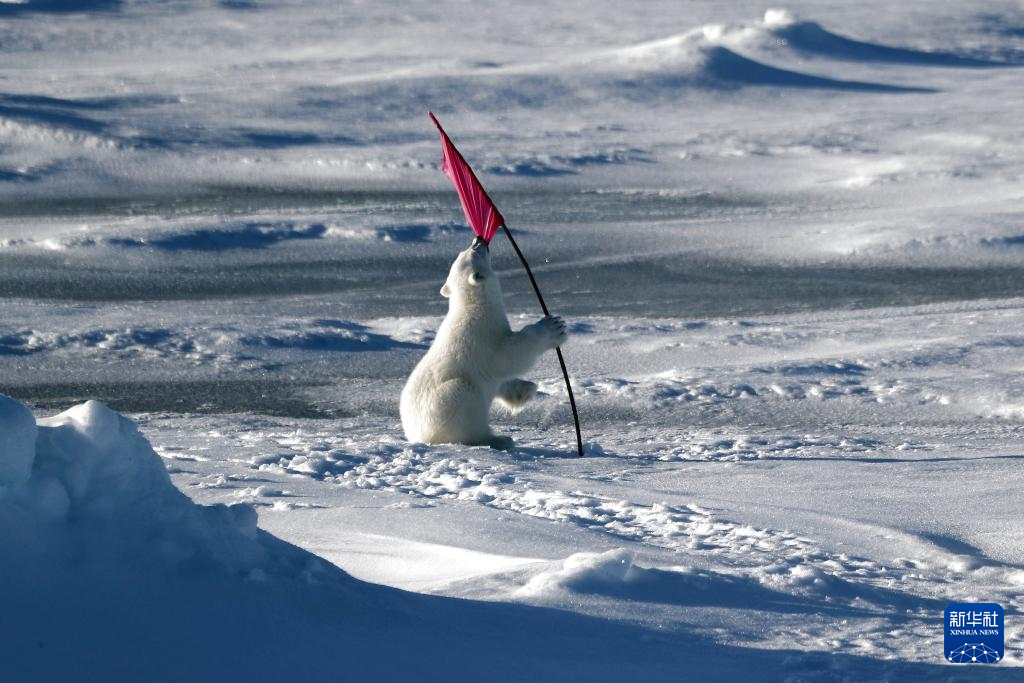 8月30日夜,在距离中国第15次北冰洋科学考察队长期冰站作业结束还剩一天时,一只北极熊妈妈带着两只熊宝宝出现在了考察队员搭乘的“雪龙2”号极地科考破冰船船边。小熊满怀好奇心,看到冰面上的每一面小旗、每一台设备,都感到新奇并玩耍一番。