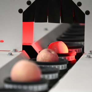 10月18日,渭南市白水县盛隆果业的选果线在自动分拣苹果。