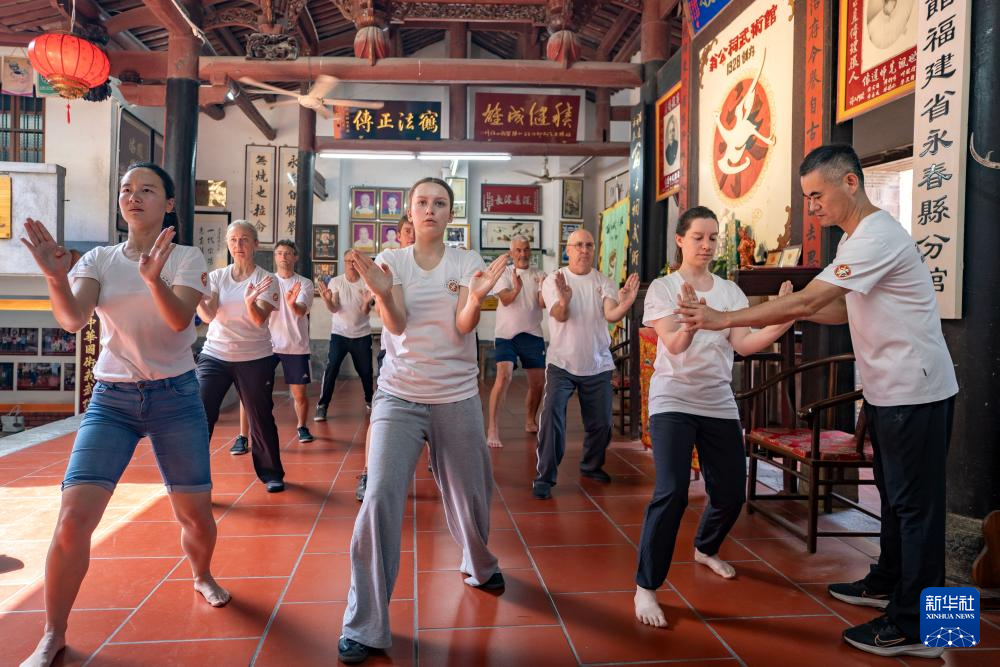 连日来,来自德国的11名永春白鹤拳弟子,不远万里,到福建省泉州市永春县五里街镇翁公祠武术馆溯源寻根,习练永春白鹤拳。