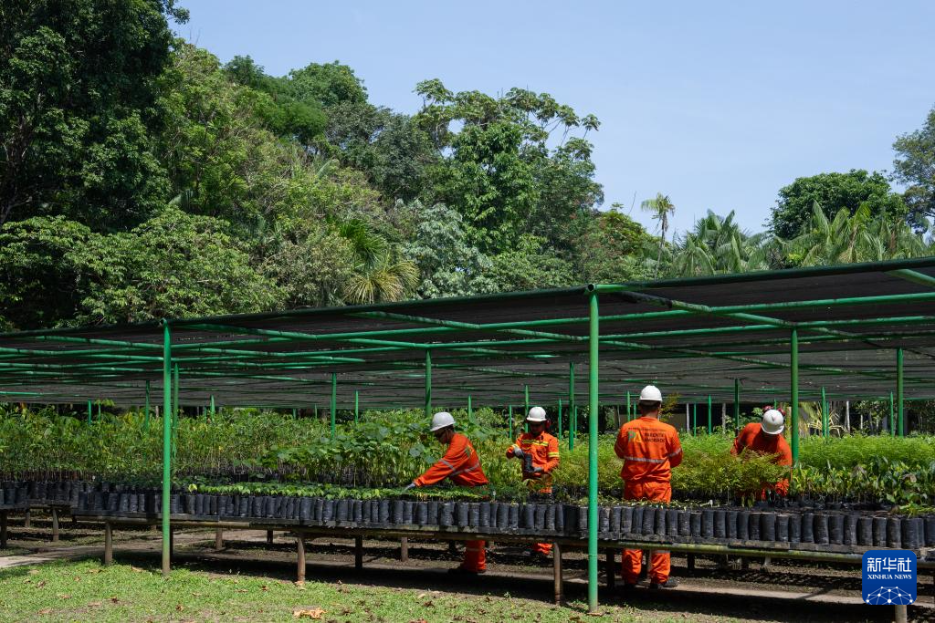 10月17日,在巴西亚马孙州的乌鲁库油气生产基地,工作人员在生态苗圃内培育热带雨林植物。