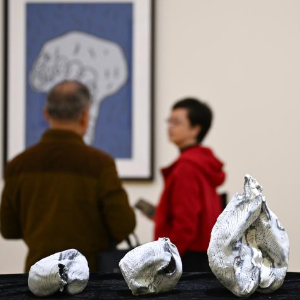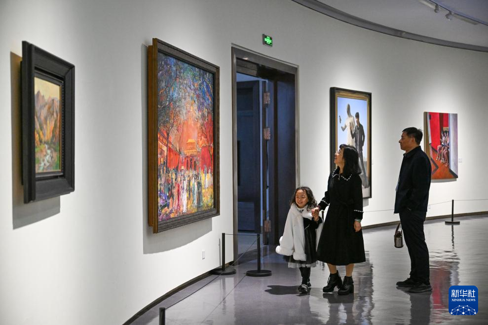 10月19日,参观者在陕西省美术博物馆欣赏艺术作品。