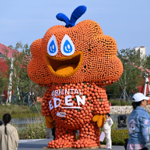近日,青岛东方伊甸园举行“南瓜艺术王国”主题展,景区内用不同品种和色泽的南瓜搭建的卡通造型憨态可掬,吸引众多游客前来赏玩。