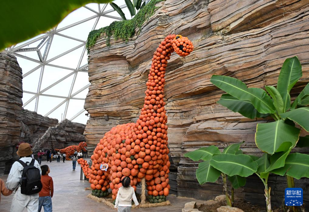 这是景区展示的一处“南瓜恐龙”造型(10月18日摄)。