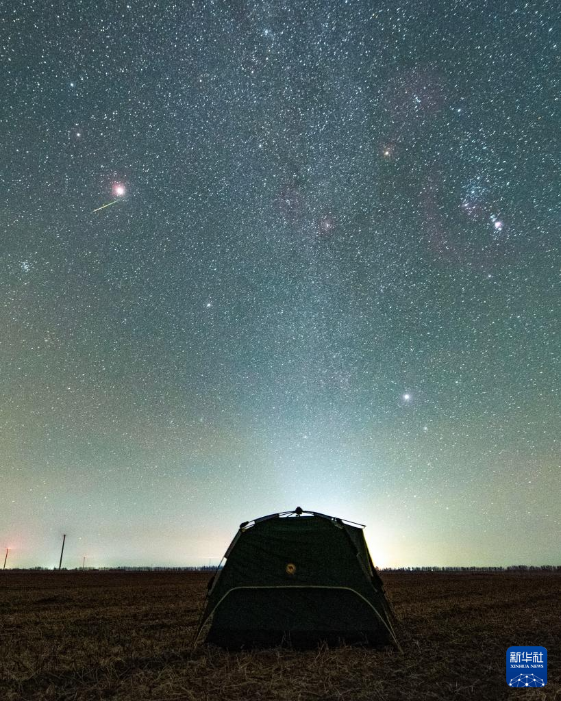 10月21日在黑龙江省桦川县拍摄的猎户座流星雨。