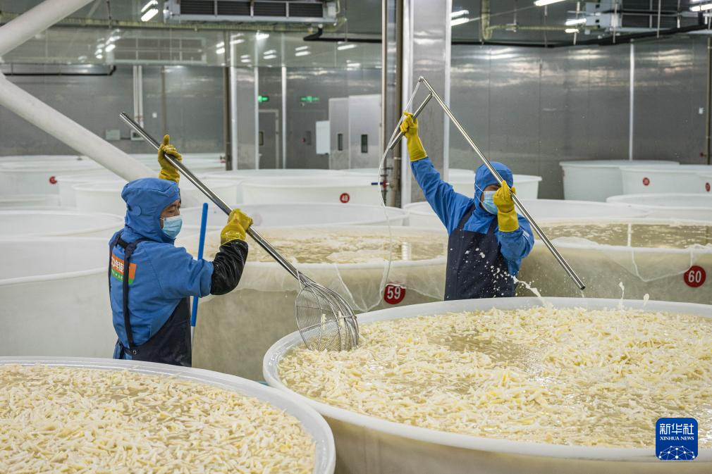 10月23日,工人在云南省昭通市镇雄县五德镇的赤水源绿色食品加工产业园竹笋生产车间内腌制竹笋。