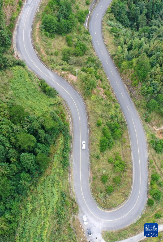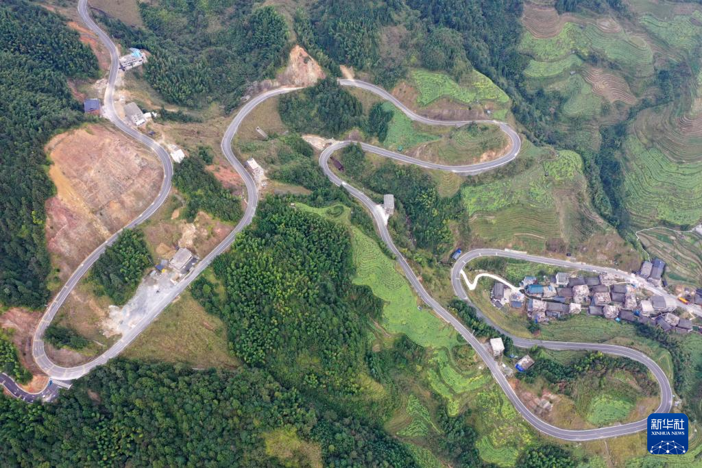这是10月23日拍摄的广西龙胜各族自治县龙脊梯田风景名胜区大循环公路(无人机照片)。