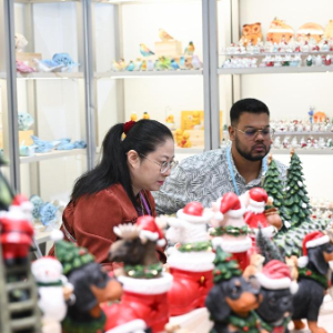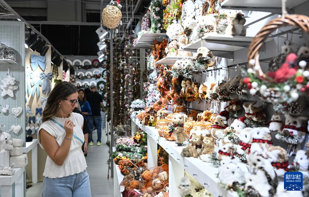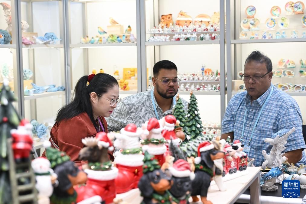 10月23日,境外采购商观看装饰品展台。