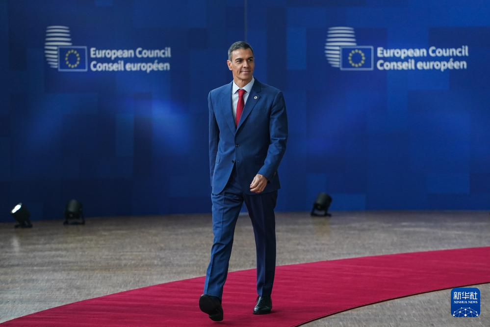 10月23日,在比利时首都布鲁塞尔,西班牙首相桑切斯出席欧盟峰会。