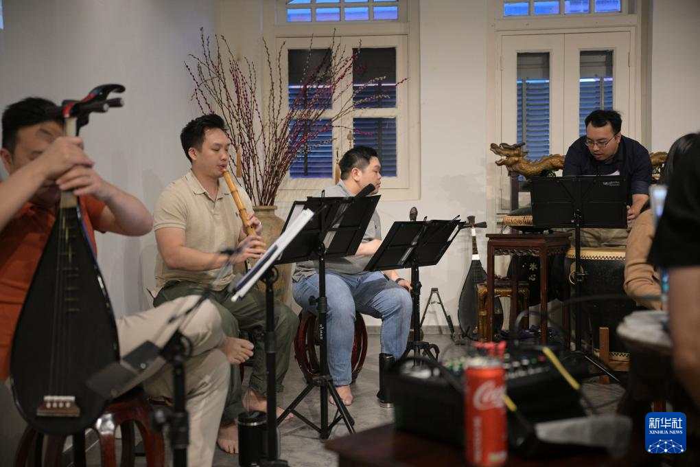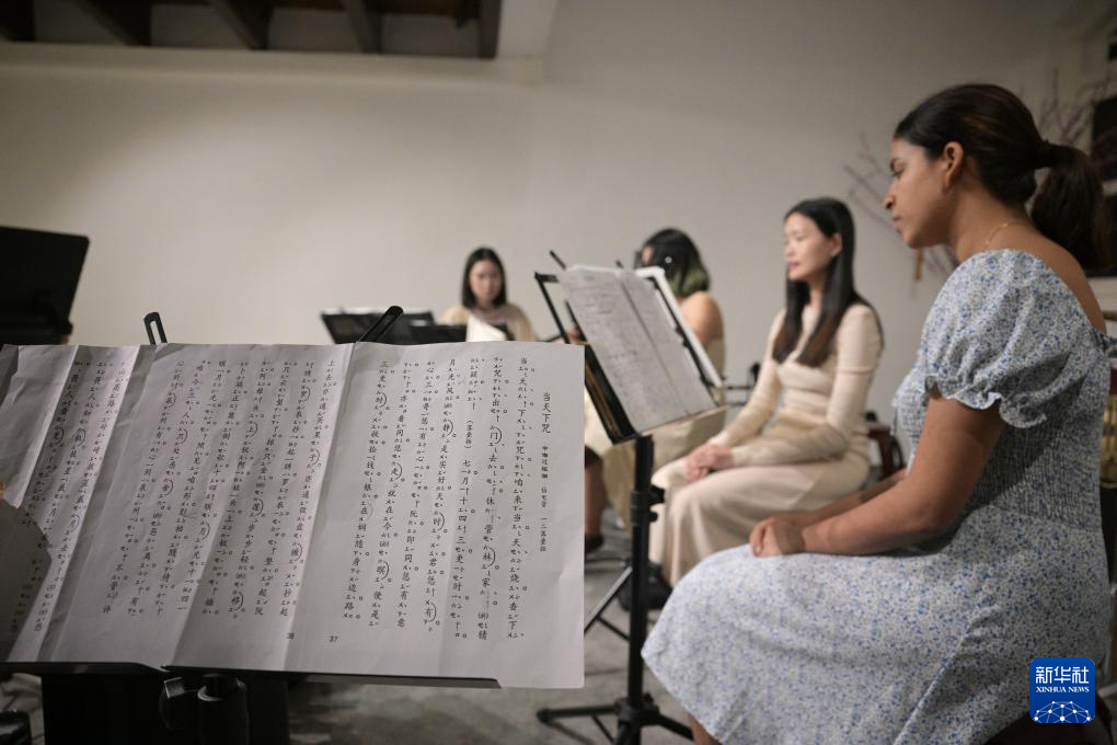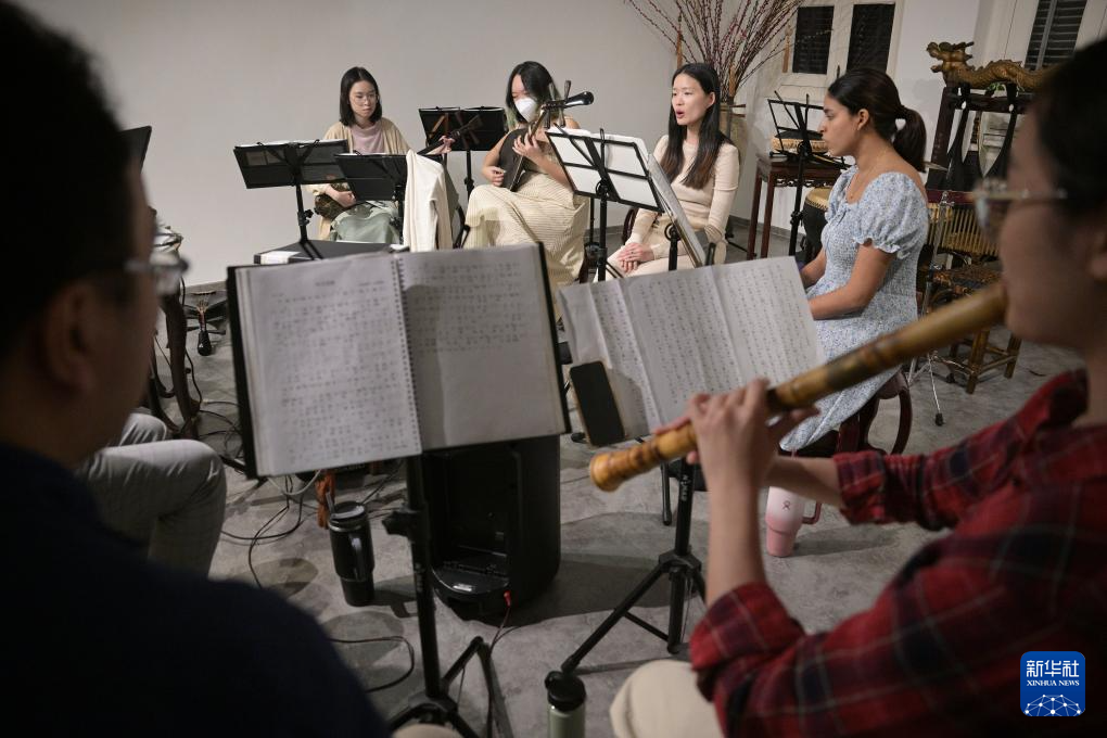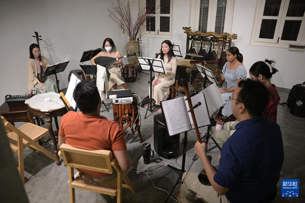1月8日,在新加坡,湘灵音乐社成员进行排练。