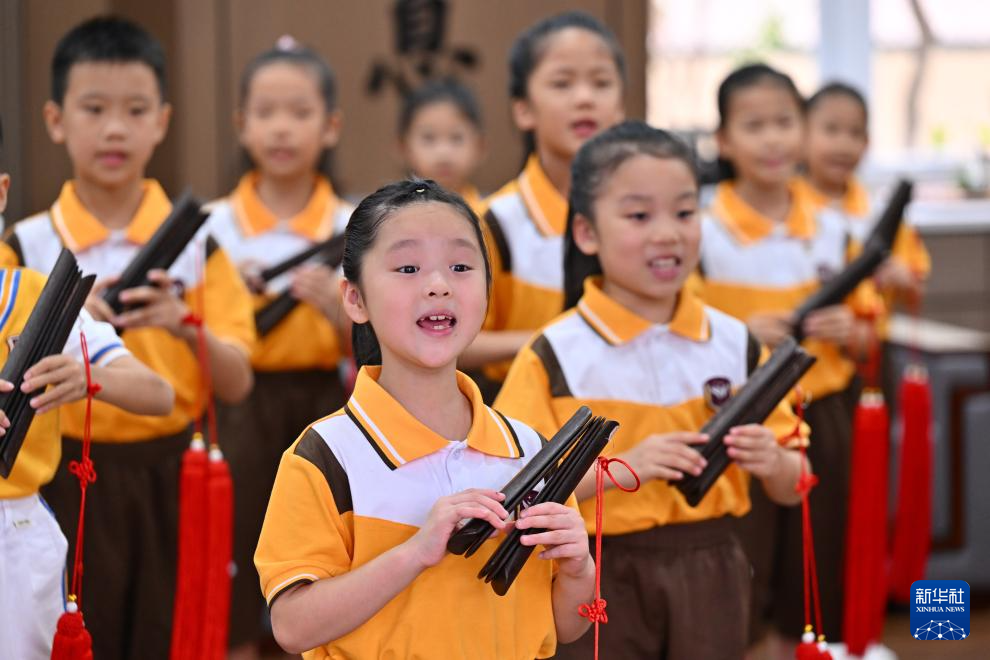 10月23日,在福建省晋江市实验小学,学生们为校庆排练南音节目。