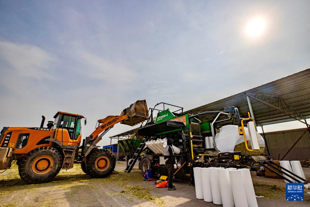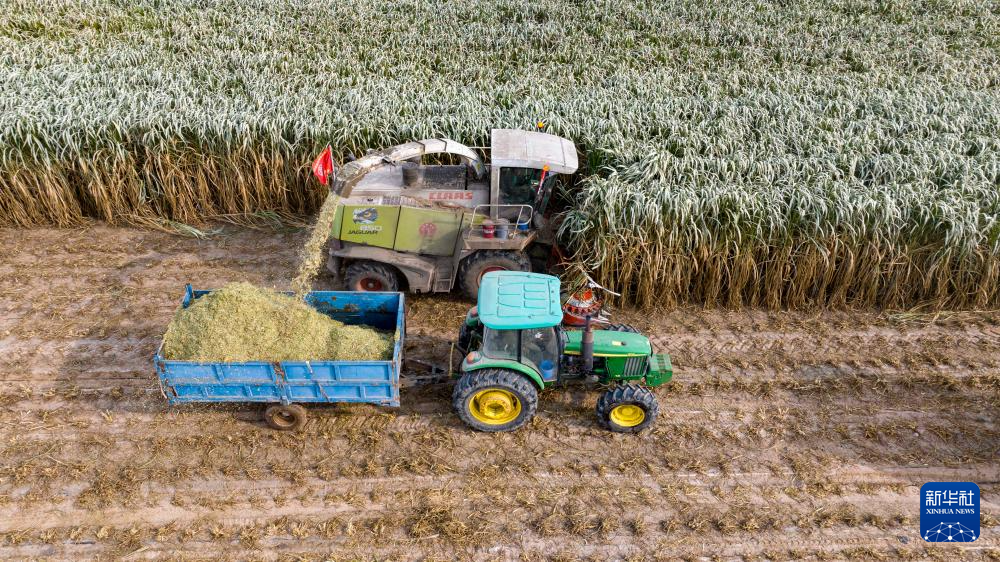 眼下,宁夏银川市永宁县闽宁镇种植的巨菌草进入收割期,当地农户出动机械收获巨菌草,田间一片繁忙景象。据了解,巨菌草收割后将作为青贮饲料,助力当地养殖业的发展。