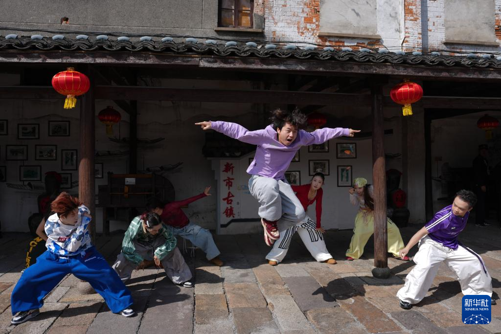 10月24日,街舞演员在新市古镇淘沙弄木色长廊表演《魅》。