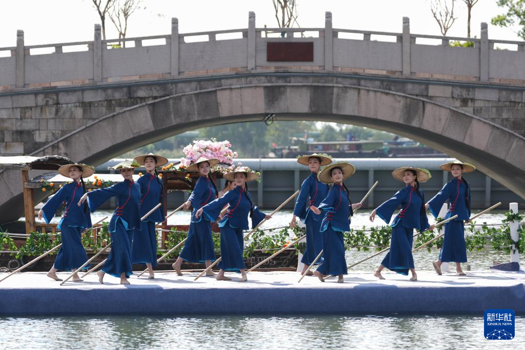 10月24日,浙江音乐学院表演者在新市古镇南栅漾表演舞蹈《烟波唱晚》。