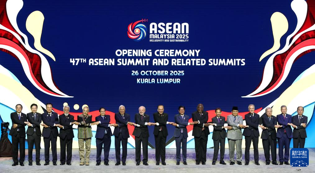 10月26日,在马来西亚首都吉隆坡,嘉宾在第47届东盟峰会及系列会议开幕式上合影。