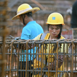 10月25日,工人在海南莫斯科动力大学(筹)校区建设现场施工。