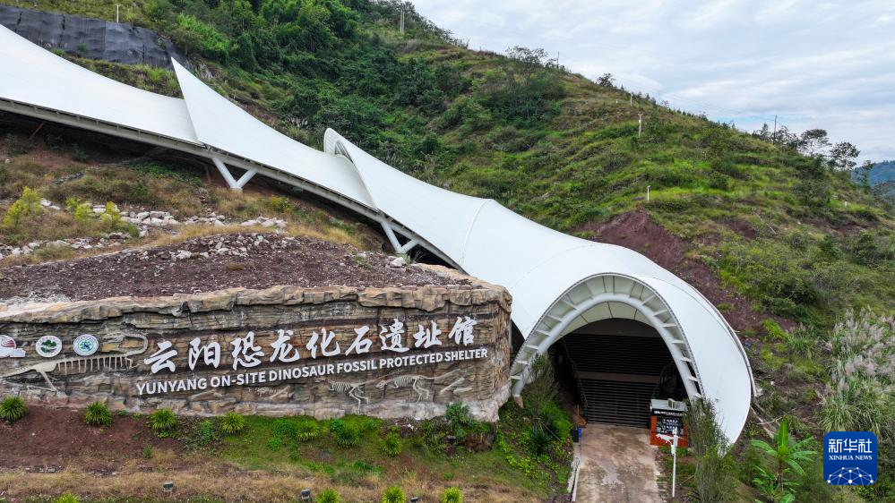 10月26日拍摄的重庆云阳世界地质公园恐龙化石遗址馆入口(无人机照片)。