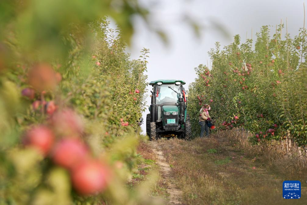 农户在中卫市沙坡头区“旱苹果”种植基地采摘苹果(10月25日摄)。