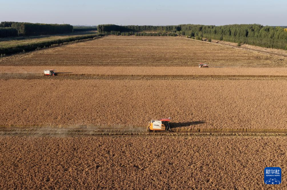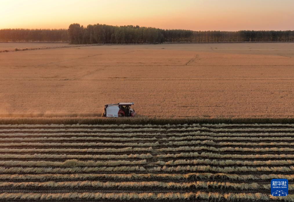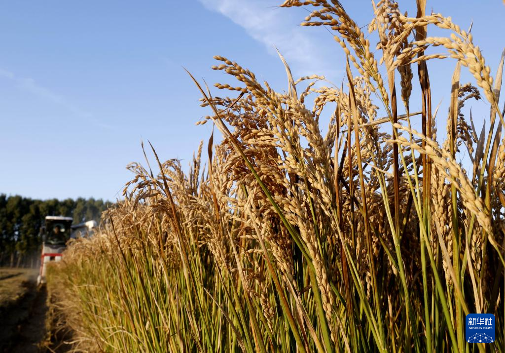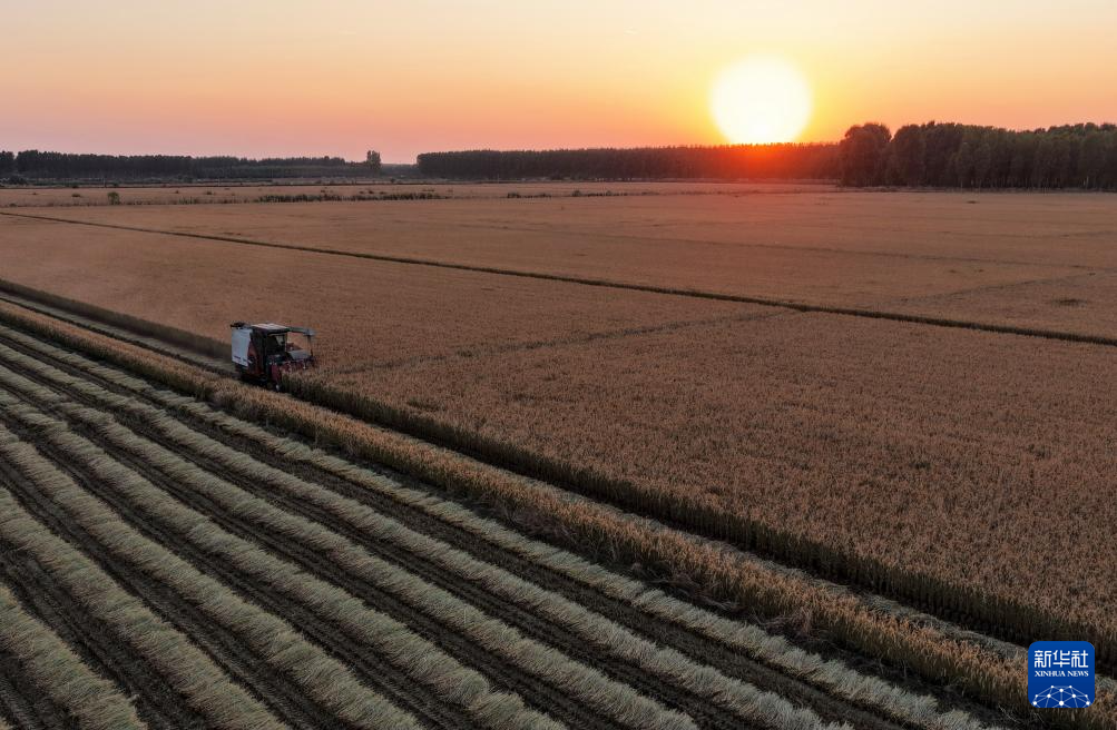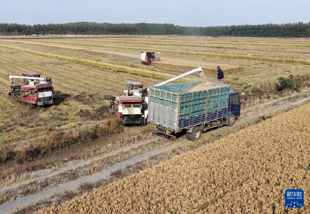 近日,河北省唐山市的水稻迎来收获季,当地农民抢抓晴好天气收获水稻。