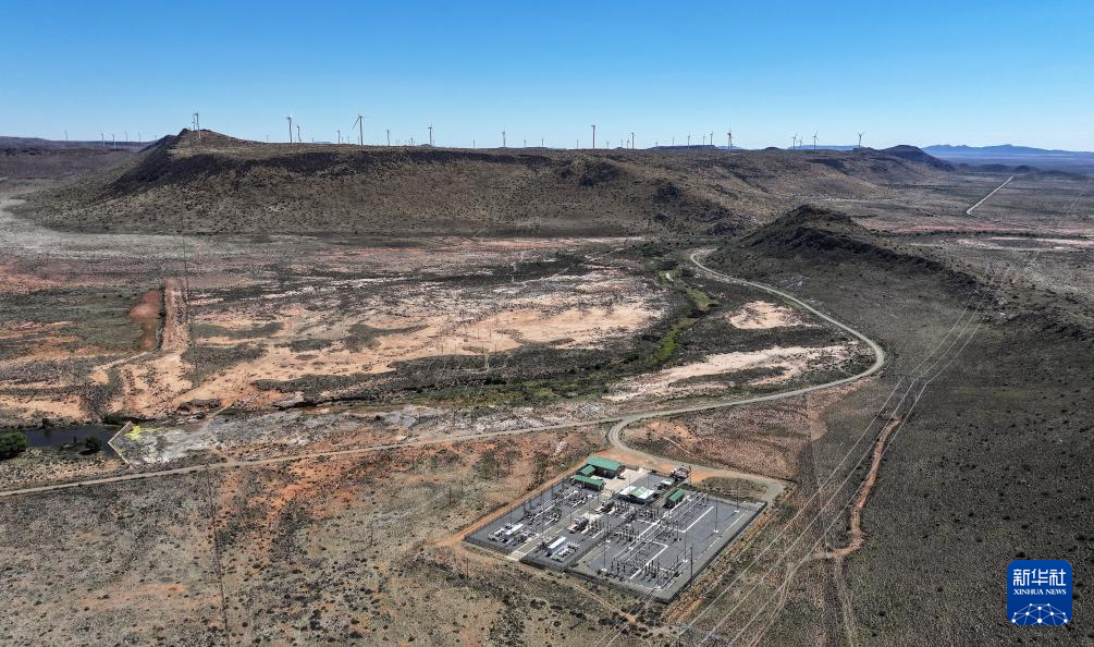 这是10月22日在南非北开普省德阿镇拍摄的德阿风电项目风机和变电站(无人机照片)。
