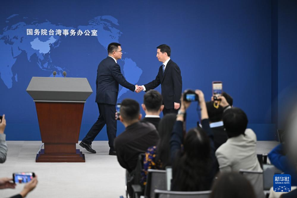 10月29日,国台办发言人陈斌华(左)介绍新任发言人彭庆恩。