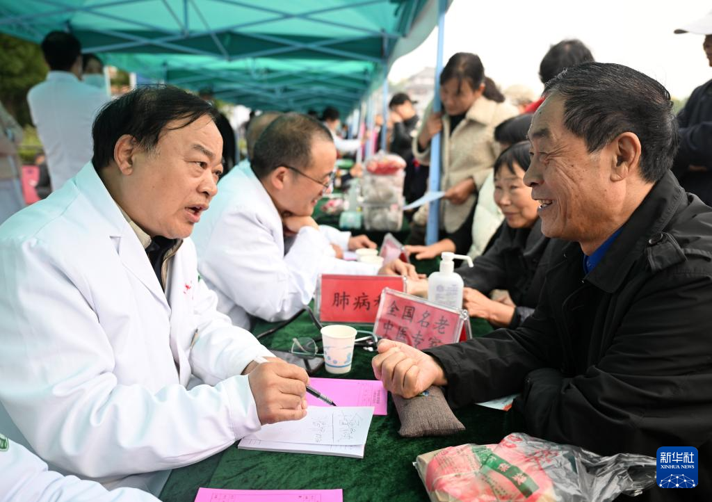 10月29日,在2025年全国“我们的节日·重阳”主题文化活动河南西平主题示范活动上,西平县中医院的医生为老年人义诊。