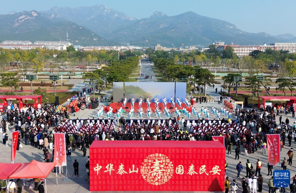10月29日在山东省泰安市拍摄的2025年全国“我们的节日·重阳”主题文化活动泰安市示范活动现场(无人机照片)。