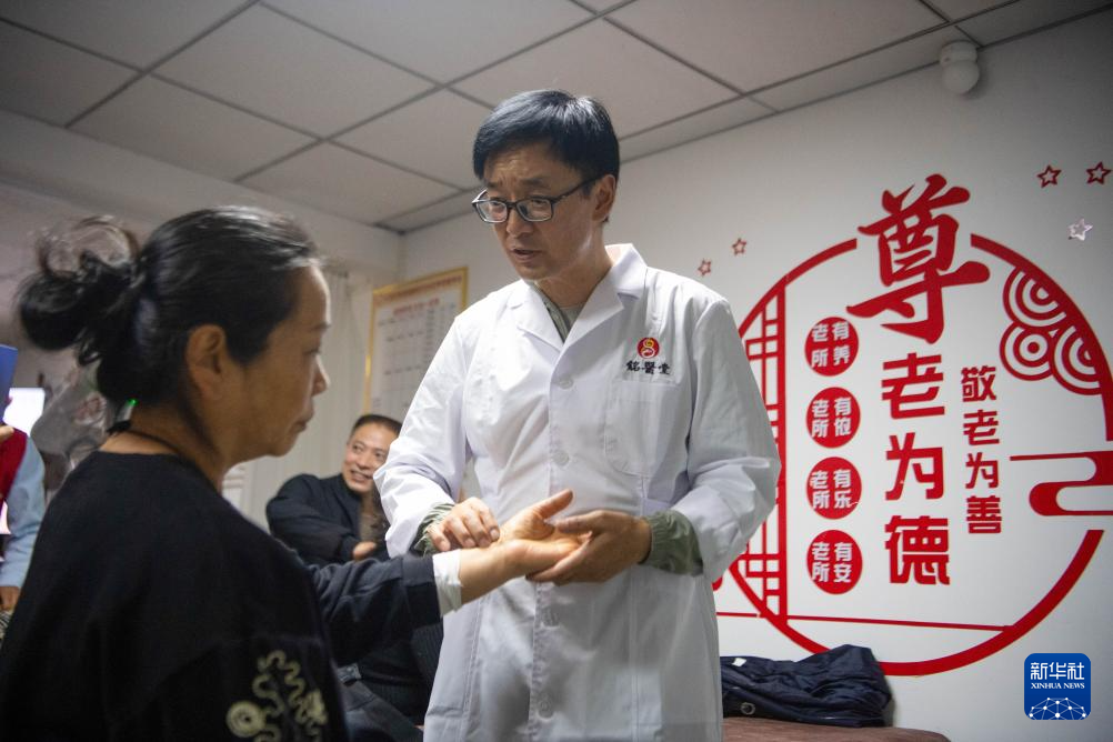 10月29日,在重庆市江北区五里店街道渝能阳光社区“享老驿站”,理疗师为老年居民提供理疗服务。