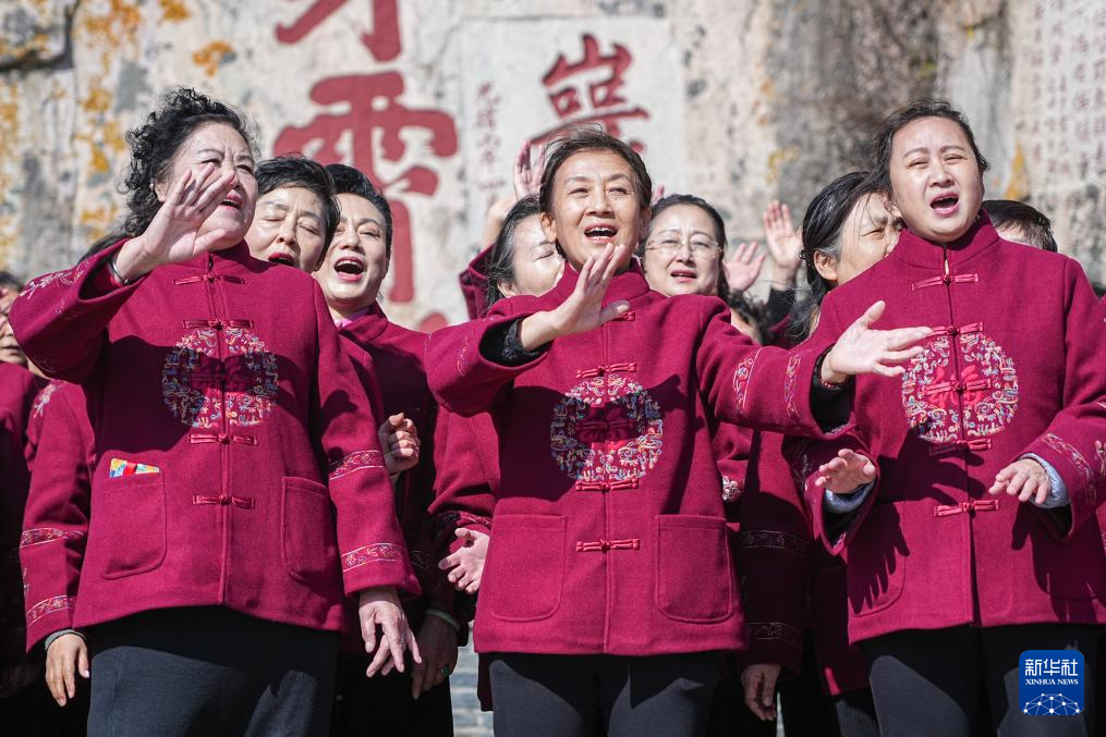 10月29日,老人在山东省泰安市举行的2025年全国“我们的节日·重阳”主题文化活动泰安市示范活动上唱歌。