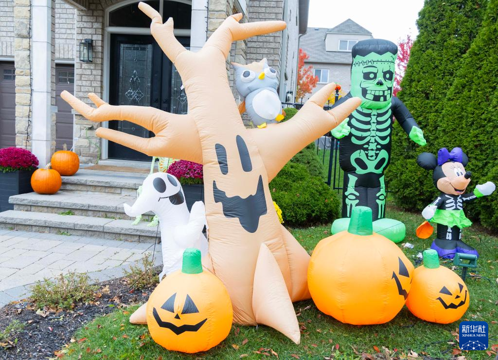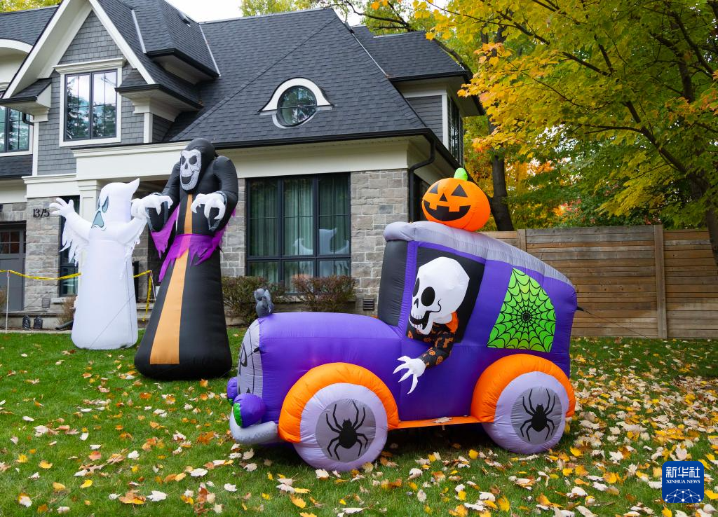 万圣节将至,加拿大安大略省奥克维尔的不少居民用各类装饰品布置房屋前的庭院,以烘托节日气氛。