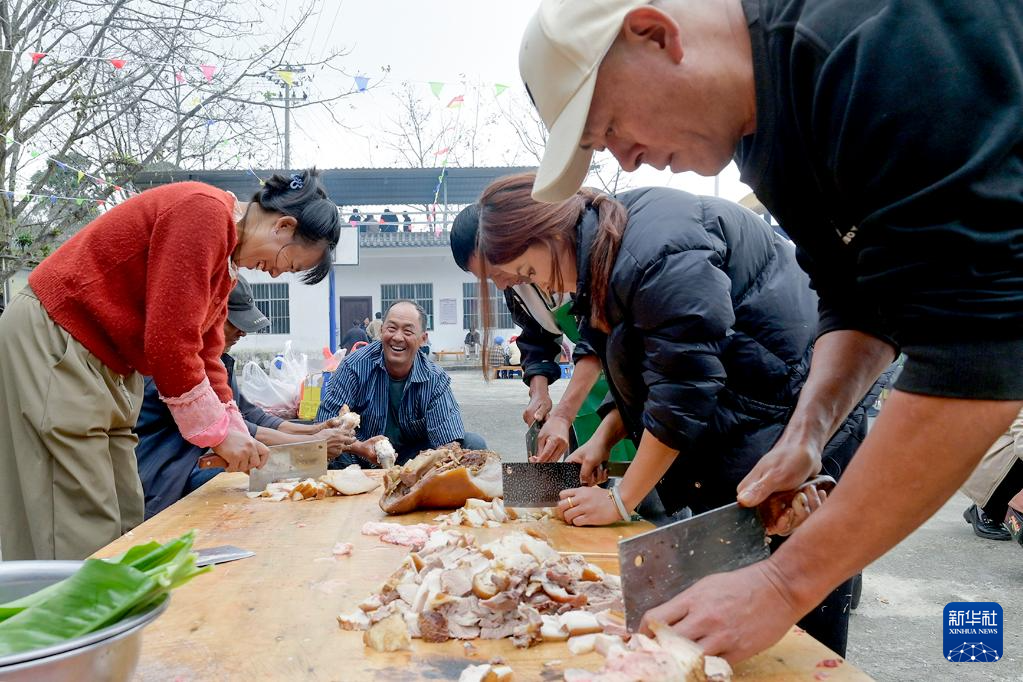 10月28日,村民在南涧县公郎镇自强村麦地平幸福小院为老人准备饭菜。