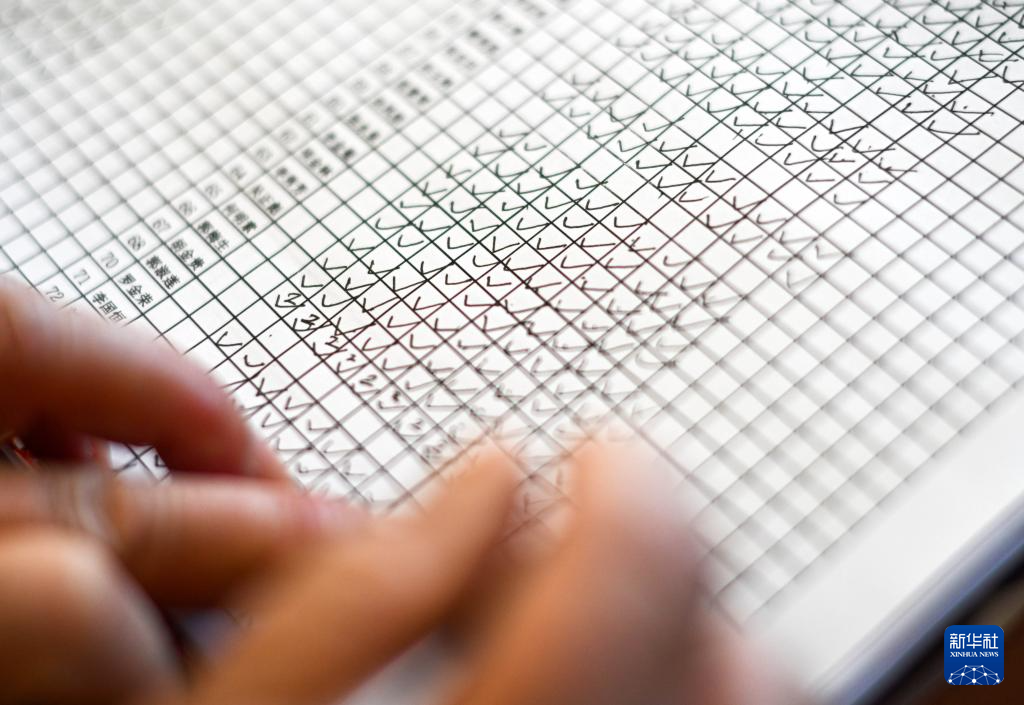 10月27日,在天津市滨海新区古林街道欣欣里社区互助食堂,王淑芹登记来就餐的老人人数。“每天来打饭的有140多人,谁没来大伙儿都惦记着。”王淑芹说。