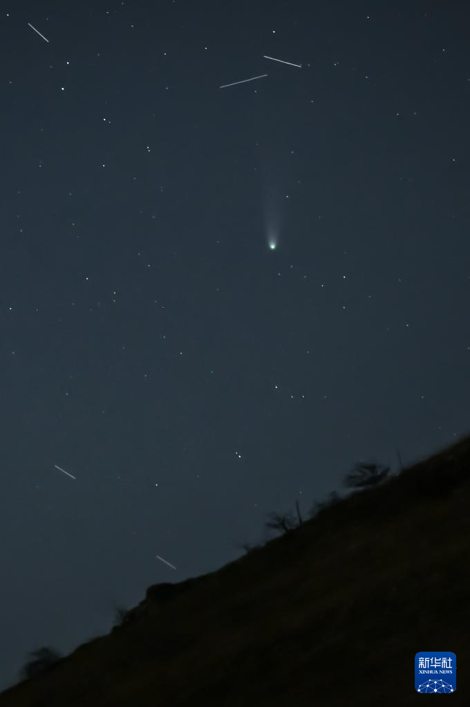 这是10月28日晚在北马其顿首都斯科普里郊外拍摄到的莱蒙彗星。