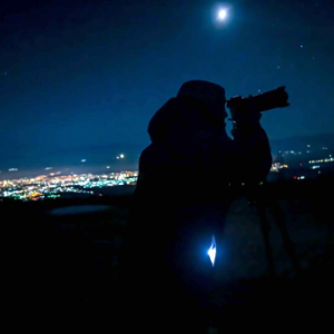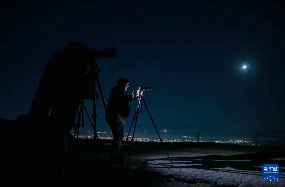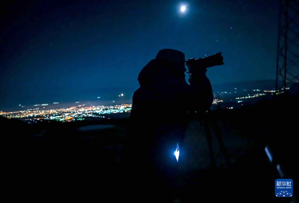 10月28日晚,摄影师在北马其顿首都斯科普里郊外拍摄莱蒙彗星。