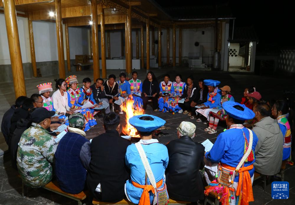 10月27日晚,云南省腾冲市中和镇傈安新村利用火塘会开展“党的创新理论进万家”的理论政策宣传。
