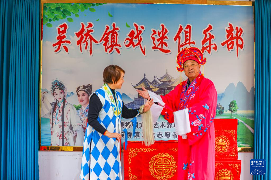 10月26日,在江苏省扬州市江都区吴桥镇文化艺术活动中心,该镇文化志愿者协会扬剧分会会员在排练扬剧。