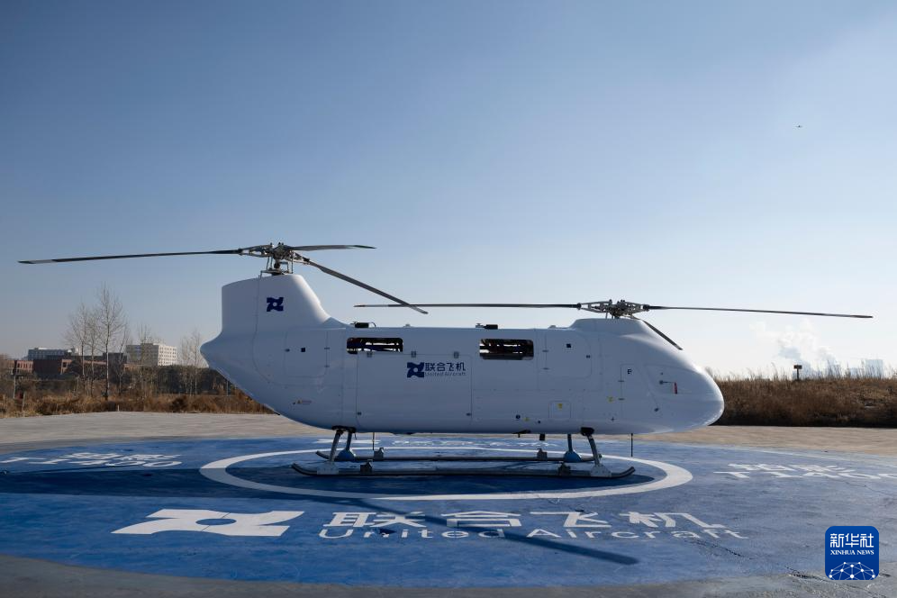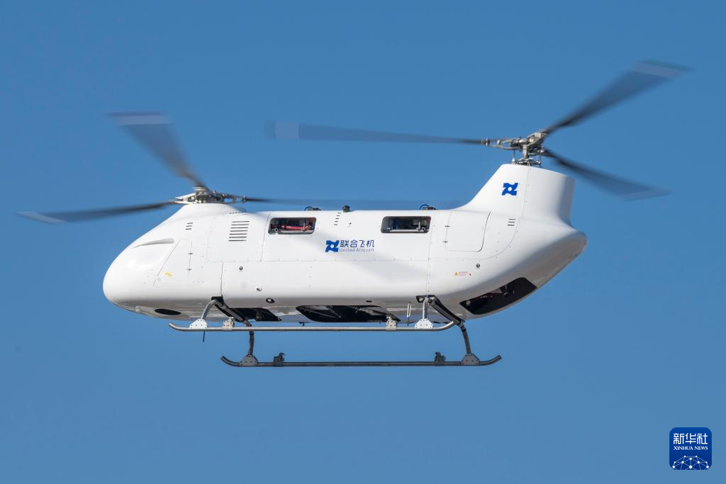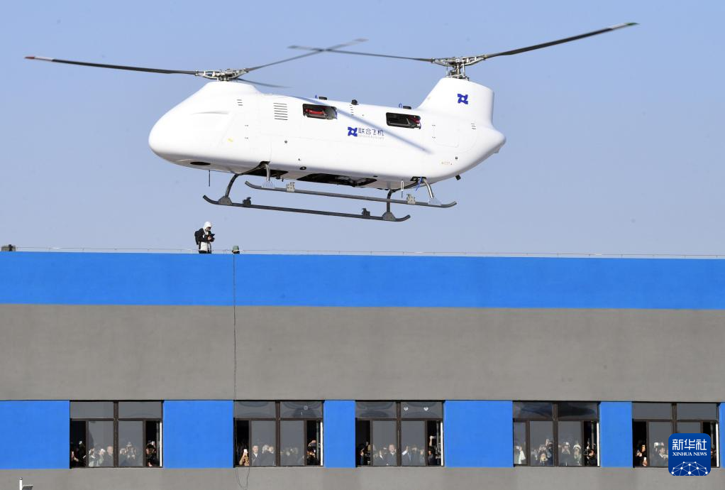 10月30日,在哈尔滨市平房区的哈尔滨联合飞机科技有限公司,T1400无人直升机在飞行中。
